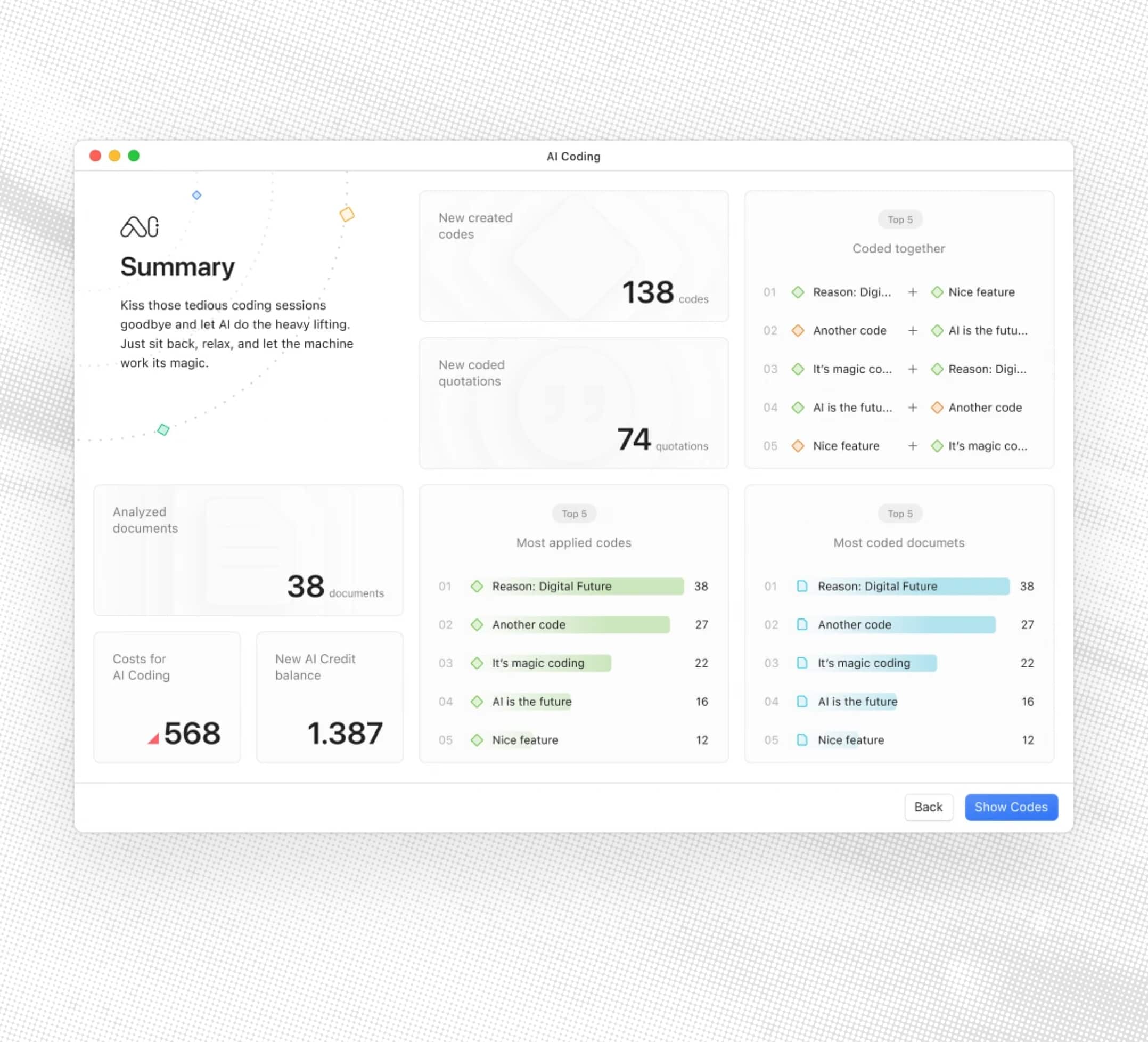 At ATLAS.ti, we believe that AI will revolutionize data analysis by increasing speed and efficiency. As a pioneering software company in our field, we have integrated OpenAI's leading GPT model for AI-driven assistance. Widely recognized as one of the most advanced in the industry, it is known for its human-like language comprehension and interpretation.