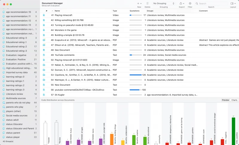 Treiben Sie Ihren Forschungsprozess mit den neuesten Technologien voran und bearbeiten Sie jede Forschungsfrage effizient. Ob in der akademischen Forschung oder für Unternehmen, die Möglichkeiten sind für verschiedene Anlässe geeignet und einsetzbar. ATLAS.ti's Tools helfen Ihnen, gründlich zu recherchieren und Zusammenhänge schnell und effektiv zu erkennen. Diese neue Technik der Wissensentdeckung spart Ihnen viel Zeit und hilft Ihnen, Ihr Zielpublikum zu erreichen und anzusprechen.