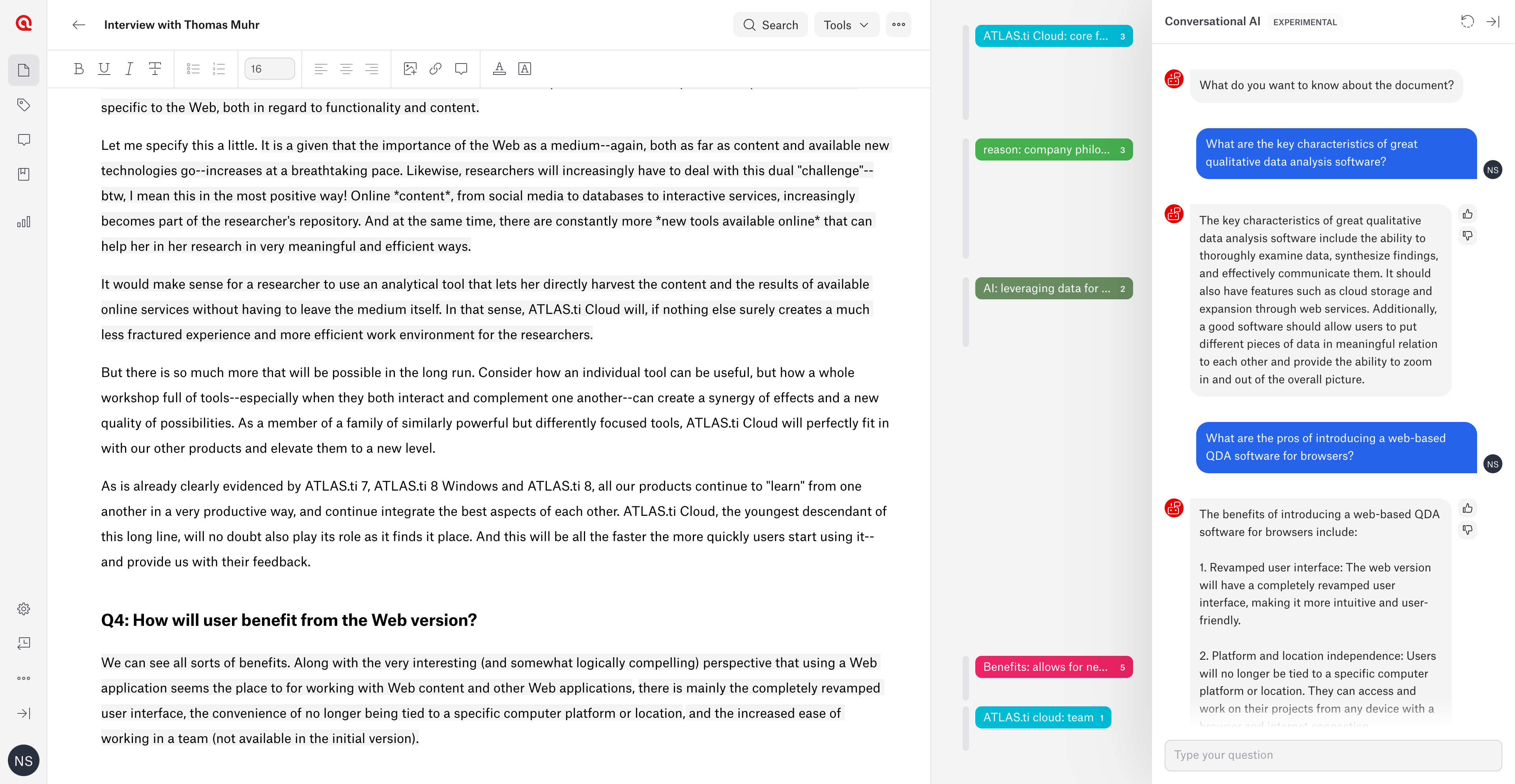 As always, we look forward to further insights and feedback from our users and are excited about the journey that expands the boundaries of what AI can achieve in the field of qualitative research and data analysis. I warmly invite and encourage you to embark on this exciting journey with us.