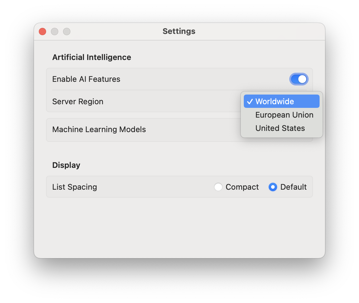 As AI capabilities become more powerful, data privacy and residency considerations are increasingly important for researchers. At ATLAS.ti, we understand these concerns, which is why we offer users and multi-user license administrators the option to disable AI features: With one switch of a button, any user or license admin can deactivate OpenAI integration across all AI features in ATLAS.ti – ensuring no data gets submitted externally. We have also pioneered a solution to give users full control over their data. With our new AI Regions option for ATLAS.ti Desktop, researchers can choose where their data is processed for AI operations. Our AI Data Residency Program enables the selection of either the United States or Europe as the preferred region.