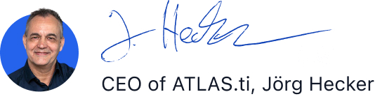 At ATLAS.ti, we are more than just a software provider; we are your partner in research. Our continuous innovation, commitment to quality, and unwavering support are all part of our promise to make your research journey as smooth and productive as possible.