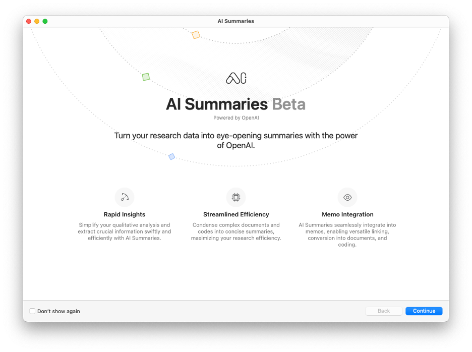 This article will look at ATLAS.ti’s new AI Summaries tool, currently in beta and available to all ATLAS.ti users. Artificial intelligence holds profound implications for qualitative research, and thanks to our collaboration with OpenAI, qualitative data coding and analysis is faster and easier than ever before. Our new AI-powered tool helps to summarize large sets of data to provide succinct descriptions of your text that you can use at various stages of your research project.