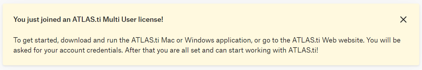 Sobald der Nutzer Ihrer Organisation beigetreten ist, kann er ATLAS.ti Web oder die Desktop-Version starten, sich mit seinem Account anmelden und die Lizenzen der Organisation nutzen.