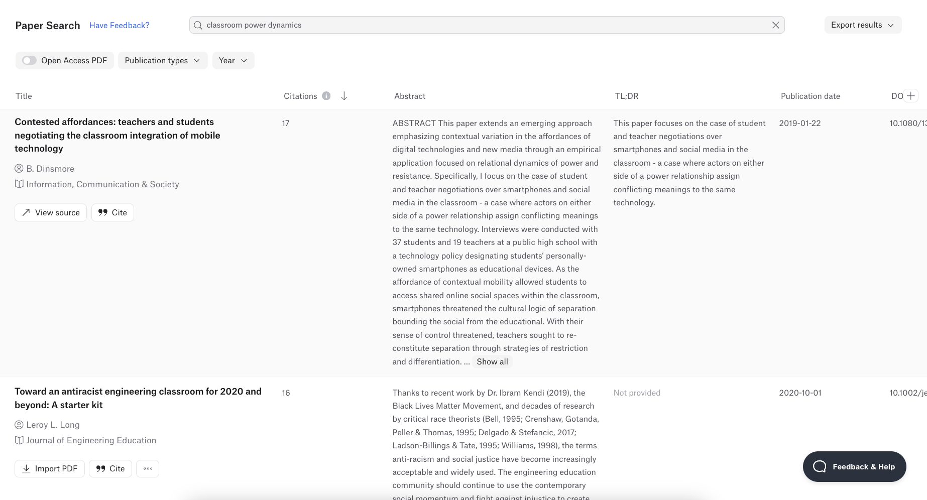 All of the major QDA platforms can read and import reference manager data from programs such as Zotero and EndNote, which is useful for moving your research library into your project so that your literature review can seamlessly inform your data analysis. However, only ATLAS.ti Web's Paper Search gives researchers the ability to directly build a useful library of journal articles and research papers in their project. With Paper Search, users can search from over 200 million articles available through Semantic Scholar and choose the papers that are most relevant to their research. Unlike with MAXQDA, users can utilize ATLAS.ti to look for the most insightful research and import it into their project to complement and jump start their literature review.