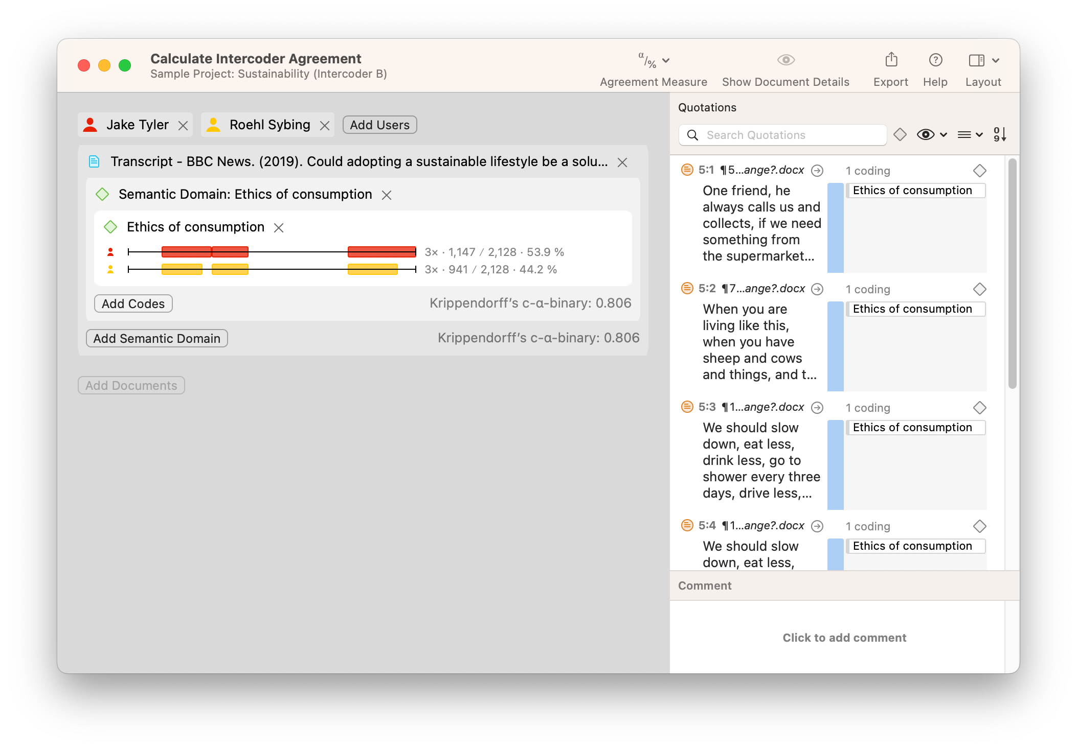 Teamwork on qualitative research projects requires a QDA platform that ensures easy integration of project work. Both ATLAS.ti and MAXQDA have tools to help organize coders' efforts in a collaborative research project and calculate intercoder agreement.