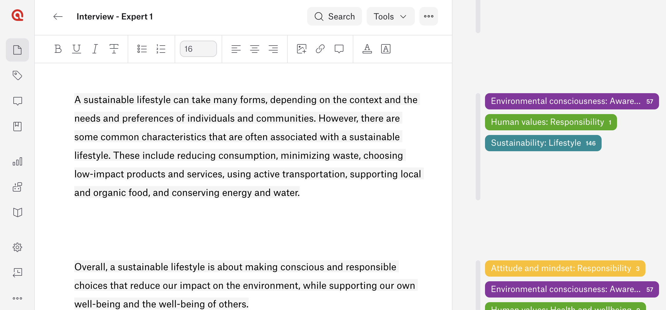 ATLAS.ti offers unparalleled artificial intelligence capabilities not seen in other QDA platforms, suiting researchers of all backgrounds and preferences. With the flexibility afforded by the various AI-powered tools in ATLAS.ti, users can code a little bit or a lot of their data with AI, which is made more powerful with the capability to tailor the coding process to specific research questions defined by the researcher. You can also engage in critical reflections with Conversational AI or just get to the salient points of the data with AI Summaries.