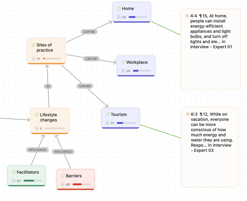 One area where ATLAS.ti excels over MAXQDA is the tools that facilitate the development of theoretical insights. This is undoubtedly one of those tasks that a researcher can't automate or delegate to artificial intelligence, but QDA software can make this job easier and more insightful.