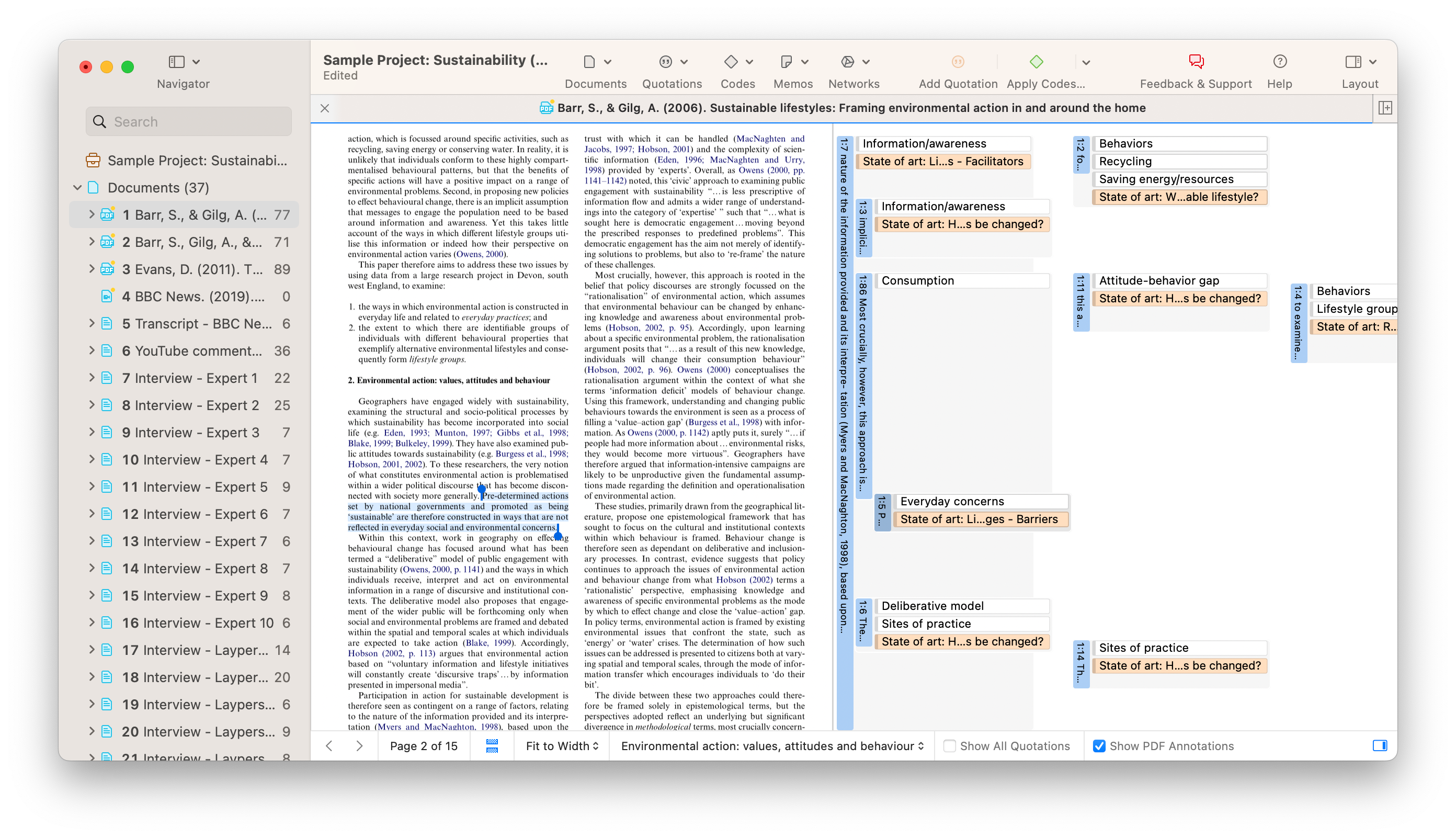 ATLAS.ti users enjoy a greater degree of flexibility with PDF files. Comments in PDF files are preserved as quotations, which can be useful for literature reviews and smoothly transferring initial qualitative analyses from raw PDFs straight into ATLAS.ti.